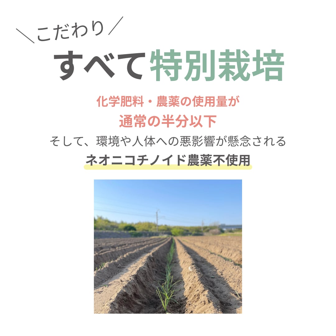 化学肥料・農薬の使用量を、一般的な栽培方法の半分以下に抑えて育てています。